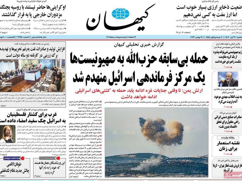 صحيفة "كيهان"، المقربة من المرشد خامنئي، على سبيل المثال نقلت في الأيام الماضية أن حزب الله، أكبر جماعة مسلحة موالية لإيران، قد انضم إلى الحرب فعليا، وأصبحت عملية طوفان الأقصى شاملة لجميع أطراف محور المقاومة.