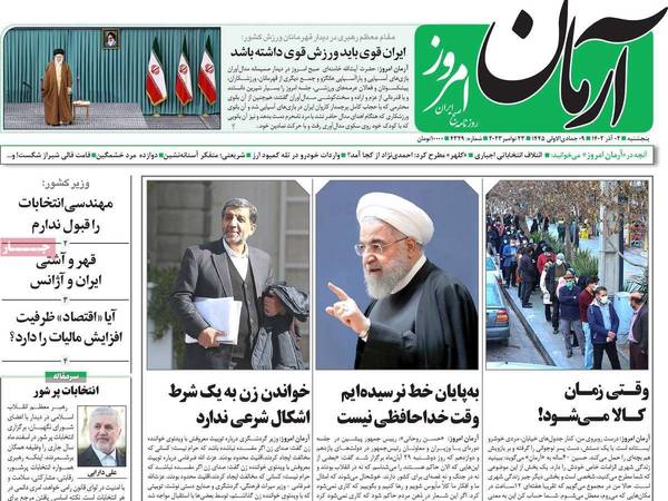 في موضوع داخلي منفصل نقلت بعض الصحف مثل "أرمان أمروز" انتقادات الرئيس الإيراني السابق حسن روحاني طريقة تعاطي السلطات الحالية مع موضوع الانتخابات حيث لا تهتم بنسب المشاركة، وأن ما يهمها هو الفوز فيها.