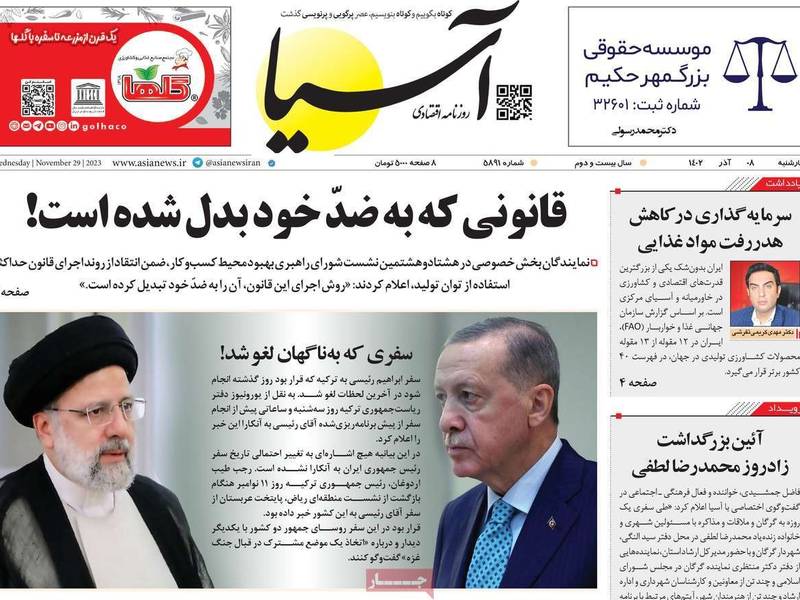 من الملفات الأخرى التي اهتم بها عدد من الصحف مثل صحيفة "أترك" هو خبر إلغاء زيارة الرئيس الإيراني إبراهيم رئيسي التي كانت مقررة يوم أمس الثلاثاء إلى تركيا دون معرفة الأسباب والخلفيات.