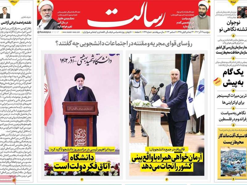 وذكرت مردم سالاري أن أنصار رئيس البرلمان محمد باقر قاليباف لا يتوقفون عن مهاجمة الحكومة ورئيسيها إبراهيم رئيسي، ويتهمون الحكومة ومؤسساتها بالتدخل في مسار الانتخابات.