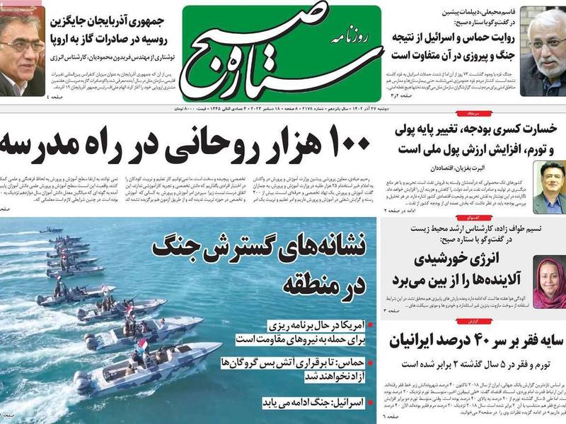 على صعيد آخر أشارت صحيفة "ستاره صبح" إلى قرار السلطات الإيرانية توظيف 100 ألف رجل دين في المدارس، وانتقدت هذا الإجراء قائلة: "في الوقت الذي تعاني منه المدارس من شح المعلمين، وهناك تقارير تتحدث عن الحاجة إلى 200 ألف مدرس نجد السلطات تقرر توظيف رجال الدين في المدارس لأهداف وغايات خاصة".