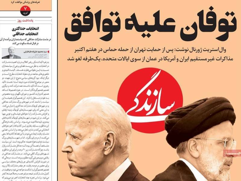 صحيفة "سازندكي" وصفت هذا التوتر في العلاقة وإفساد المفاوضات بالقول: "طوفان ضد طوفان"، وقالت إن الاتفاق غير المكتوب بين طهران وواشنطن انتهى قبل أن يصل إلى مراحل الكتابة والتدوين.