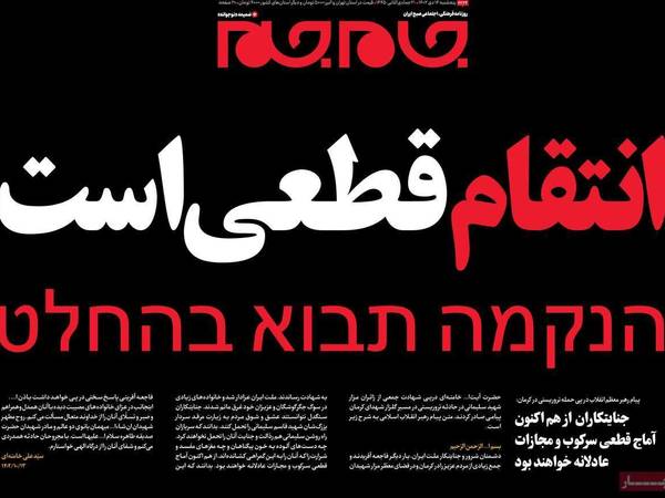 "الانتقام قادم لا محالة" هذا ما ستخرج به من قراءة تغطية الصحف الإيرانية الصادرة اليوم، الخميس 4 يناير (كانون الثاني)، بعد يوم دام شهدته إيران مخلفا نحو 100 قتيل، قبل أن تراجع السلطات وتقول في آخر إحصاء لها إن عدد الضحايا 84 شخصا فقط.