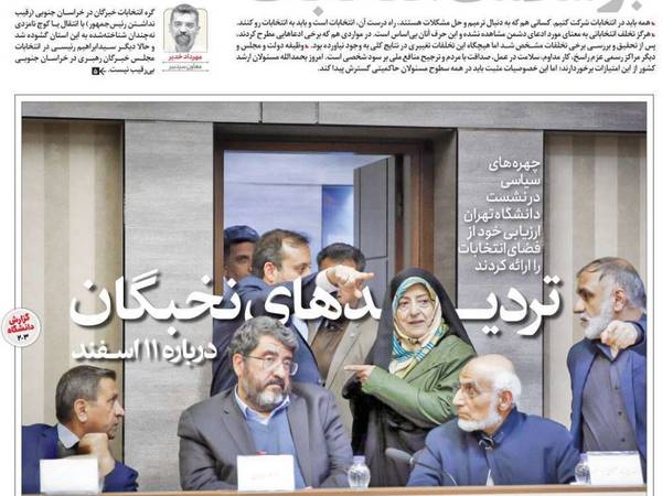 المرشد علي خامنئي قال يوم أمس إنه من الضروري أن يشارك المواطنون في الانتخابات المرتقبة "من أجل حل المشكلات في البلاد"، وكثير من الصحف المقربة من النظام عنونت بكلام خامنئي ودعوته الحثيثة إلى المشاركة في العملية الانتخابية.