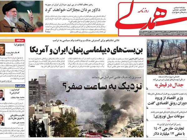 أما الصحف الموالية للنظام والحكومة فركزت في عناوينها الرئيسية على تصريحات المسؤولين والمرشد علي خامنئي الذي توعد برد "يجعل إسرائيل تندم" على استهدافها للقنصلية الإيرانية ومقتل قادة الحرس الثوري في سوريا.