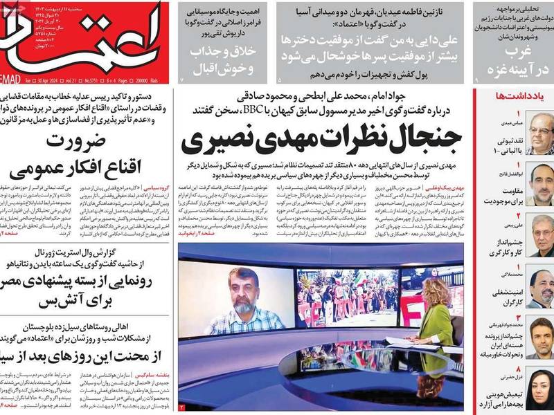 تناولت صحيفة "اعتماد" في تقرير لها ظاهرة التحول في الانتماء السياسي في إيران خلال العقود الأخيرة، حيث تنقلب بعض الشخصيات على تاريخها السياسي، وتصبح في المعسكر المضاد منه، مستشهدة بمثال الأصولي مهدي نصيري، حيث كان من الناشطين في صحيفة "كيهان" في العقود الأخيرة، لكن ومنذ عقدين تقريبا تحول إلى الجهة المقابلة والمنتقدة للنظام، وباتت آراؤه تتضمن المطالبة بإسقاط النظام وتجاوز الجمهورية الإسلامية.
