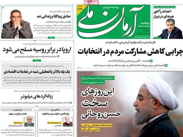 "آرمان ملي": المستقبل السياسي لروحاني بعد إقصائه من الانتخابات