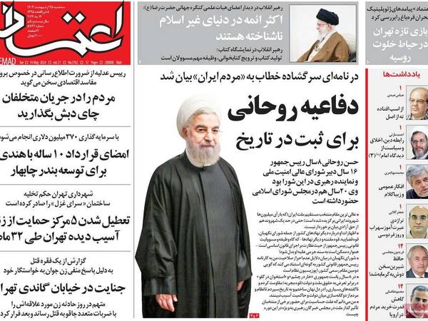 صحيفة "اعتماد" الإصلاحية نشرت رسالة روحاني المطولة وعنونت: "دفاع روحاني للتسجيل في التاريخ"، فيما استخدمت صحف أخرى عناوين مختلفة، كما فعلت صحيفة "جهان صنعت" حيث اختارت مقتطفات من كلام روحاني وعنونت رسالته بها، وكتبت في صفحتها الأولى: "هذا ظلم.. لن أسكت"، وقالت "شرق" الإصلاحية: "دفاع عن الجمهورية"، معتقدة أن رسالة روحاني هي محاولة من رئيس جمهورية سابق للدفاع عن النظام الجمهوري، ويواجه الاستبداد والإقصاء الذي تمارسه بعض مؤسسات الدولة.
