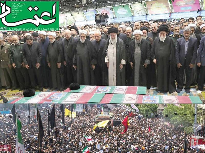 كما سلطت الصحف الموالية للنظام خبر تشييع رئيسي ومرافقيه، حيث لا تزال إيران حتى كتابة هذا التقرير لم تدفن ضحايا الحادث، إذ إنها تتجول بهم في مدن تبريز ثم طهران وقم لينقل جثمان رئيسي إلى مشهد، شمال شرقي إيران، فيما يُدفن الآخرون في طهران وتبريز.