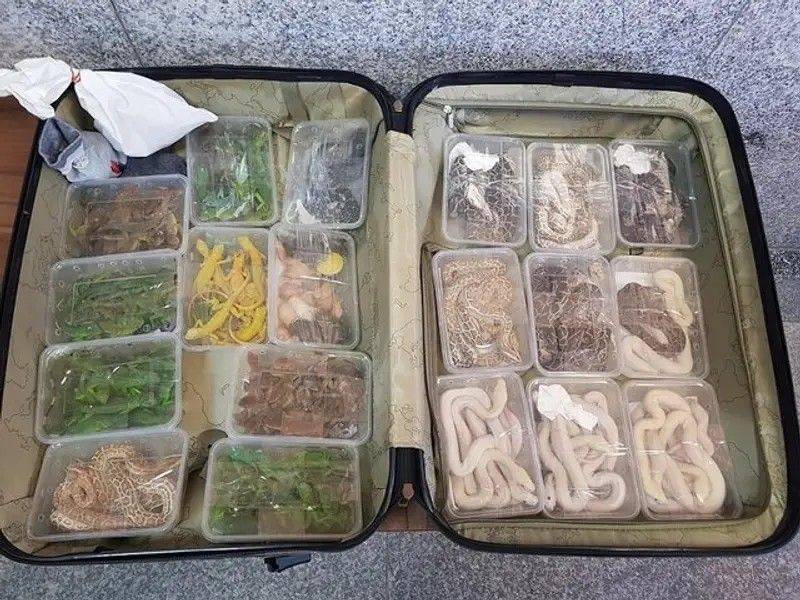 قال قائد وحدات الشرطة الإيرانية، رضا بني أسدي فر، إن أفراد الأمن بمطار "الإمام الخميني" الدولي في طهران، عثروا على حقيبتي مسافرين بهما 120 نوعًا من الزواحف، كانت عبارة عن 31 ثعبانًا و59 إغوانة و30 سلحفاة سويدية.