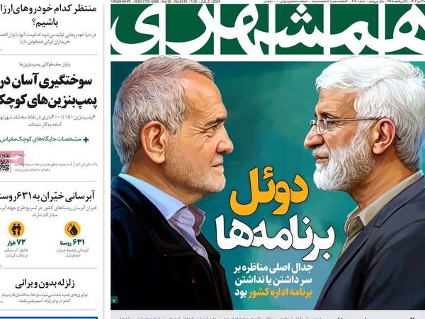 الإصلاحيون وصحفهم حاولوا دفع المواطنين إلى المشاركة من خلال "تخويفهم" من فوز جليلي المتشدد في حال انخفاض نسبة المشاركة، وعنونت صحيفة "آرمان أمروز" بكلام الرئيس السابق حسن روحاني، الذي قال إن "مقاطعة الانتخابات بمثابة الانتحار"، فيما كتبت "جملة" فوق صورة كبيرة لبزشكيان: "الصوت المنقذ"، معتقدة أن التصويت للمرشح الإصلاحي هو الطريق الوحيد لإنقاذ إيران من مزيد من المشكلات والأزمات والعزلة الدولية.