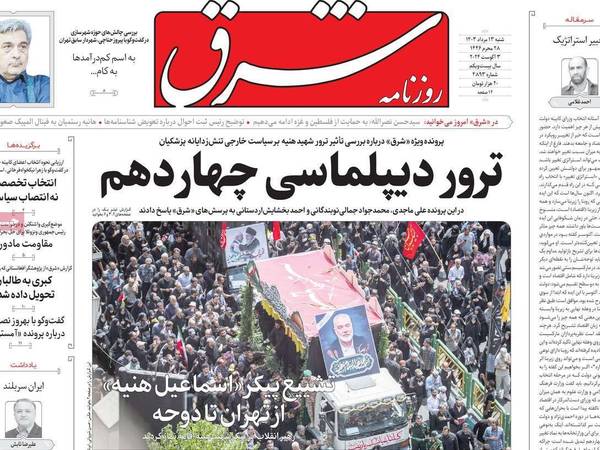 لا يزال لغز اغتيال إسماعيل هنية، بعد ساعات قليلة من مشاركته في مراسم أداء اليمين الدستورية للرئيس الجديد، والتبعات الداخلية والخارجية لذلك، العنوان الأبرز لتغطية الصحف الإيرانية الصادرة اليوم، السبت 3 أغسطس (آب).