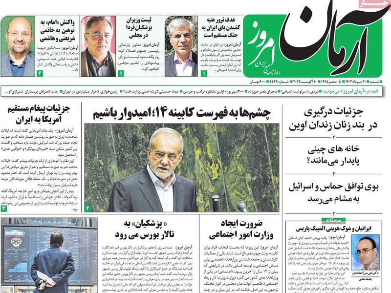 وفي شأن غير بعيد، وعن ظروف المرحلة، التي جاء بها الرئيس الإيراني الجديد، مسعود بزشكيان، قال الكاتب الإصلاحي، عباس عبدي، إن لدى بزشكيان فرصة ذهبية للتغيير، ولو استغل هذه الفرصة فسيحتل مكانة مرموقة بين من خُلدوا في تاريخ إيران الحديث، أمثال ستارخان وباقرخان، أثناء العهد الدستوري مطلع القرن الماضي.