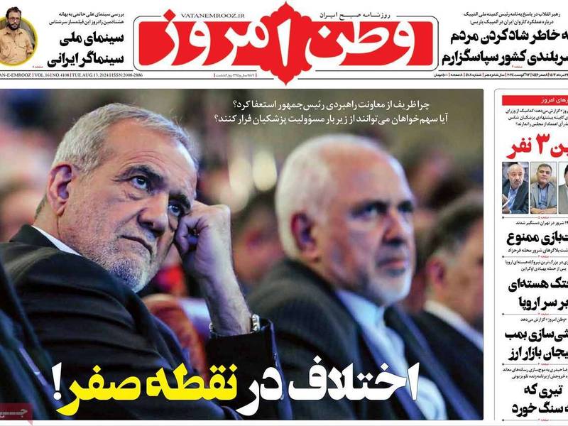 صحيفة "جوان"، المقربة من الحرس الثوري، هاجمت ظريف واستقالته، متهمة إياه بأنه يحاول الضغط على رئيس الجمهورية لتكون قراراته تابعة لظريف ونهجه، بعد أن كان قبل أسابيع قليلة يدعي بأن بزشكيان هو "طبيب مشكلات إيران".