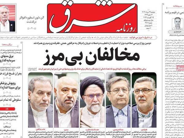 وكتبت الصحيفة في هذا السياق: "بعض مسؤولي ما يسمى المجلس القيادي لترشح الوزراء هم مجرمون أصحاب سجلات قضائية، وقد رشحوا بعض الوزراء الذين كانت لهم أدوار في فتن (احتجاجات) أعوام 2009 و 2022، وقد باع هؤلاء معلومات حساسة للأعداء والأجانب، ونابوا عن أميركا وإسرائيل في قيادة التمرد على نظام الجمهورية الإسلامية".