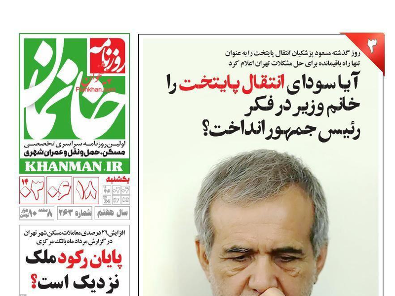 ومن الملفات الأخرى التي أبرزتها بعض الصحف أيضًا قضية أزمات العاصمة طهران المتراكمة؛ حيث قال بزشكيان في تصريحات له أمس إن الطريق الوحيد لحل هذه الأزمات هو نقل العاصمة إلى مكان آخر.