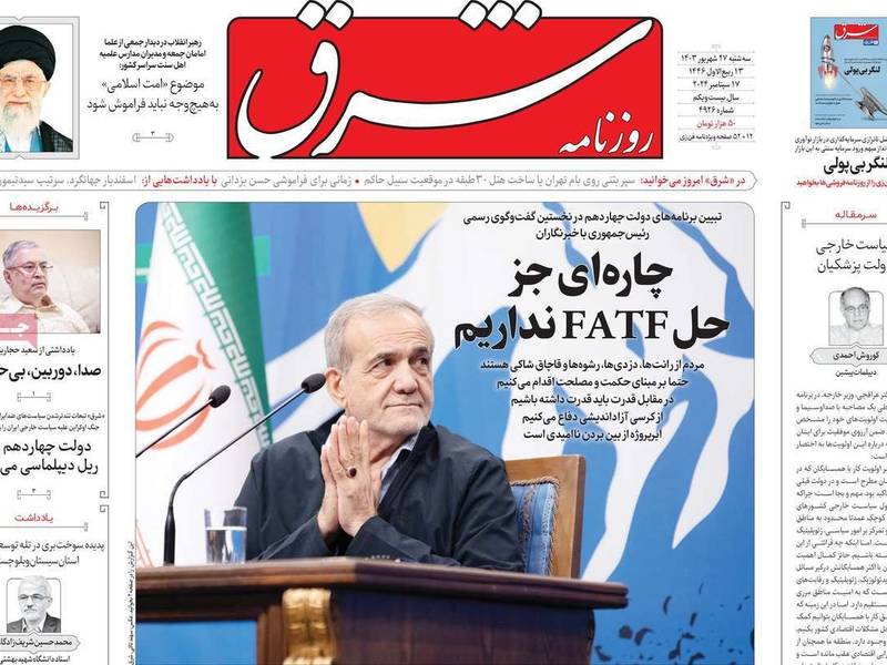 صحيفة "ستاره صبح" أشارت إلى ما ذكره الرئيس الإيراني من مشكلات وأزمات في إيران، وعنونت بخط عريض: "الوضع الحالي لا يمكن أن يستمر"، لافتة إلى قضية شرطة الأخلاق، وحجب الإنترنت، ووسائل التواصل الاجتماعي، والإقامة الجبرية على قادة الحركة الخضراء، والفساد، وأزمة الطاقة (الكهرباء والغاز)، والعقوبات والعلاقة مع الولايات المتحدة، وهي كلها ملفات تطرق لها بزشكيان، وأكد على ضرورة حلها.