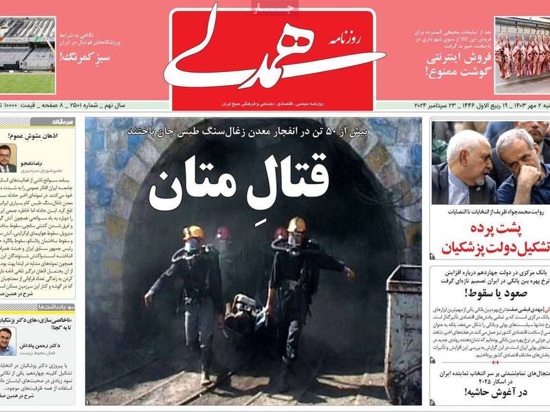 في شأن آخر أشارت صحيفة "آرمان ملي" إلى زيارة الرئيس بزشكيان إلى الولايات المتحدة الأميركية، وعنونت بالقول: "زيارة وسط النار والدخان"، موضحة أن الزيارة تأتي في وقت حساس للغاية، وظروف معقدة جدا، معربة عن أملها في أن تجد الدبلوماسية الإيرانية طريقا للخروج من هذا الوضع المخيف.