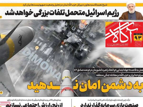في سياق غير بعيد وحول نتائج الهجوم الصاروخي لإيران على إسرائيل في الأول من أكتوبر زعمت صحيفة "كيهان"، المقربة من المرشد علي خامنئي، أن الهجوم الصاروخي الإيراني الأخير على إسرائيل خلف 341 قتيلا من العسكريين الإسرائيليين، بمن فيهم قيادات رفيعة المستوى.
