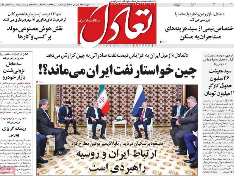 ومن الملفات الأخرى، التي تناولتها بعض الصحف، لقاء الرئيس الإيراني، مسعود بزشكيان، نظيره الروسي، فلاديمير بوتين، في عشق آباد، عاصمة تركمانستان، والقضايا التي تناولها اللقاء.