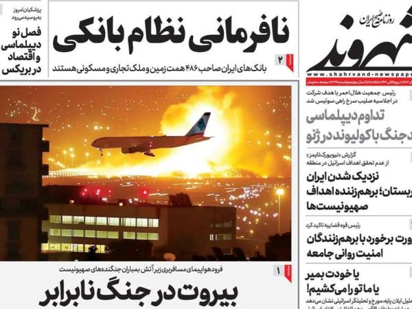 أما الصحف الأصولية مثل "سياست روز" فنقلت تصريحات قائد الجيش الإيراني، وعنونت بالقول: "على أهبة الاستعداد"، فيما كتبت صحيفة "شهروند" أن حزب الله ولبنان عموما باتوا يعيشون في حرب غير متكافئة، ناشرة صورة من غارات جوية إسرائيلية بالقرب من مطار بيروت الدولي أثناء هبوط إحدى الطائرات المدنية في المطار.