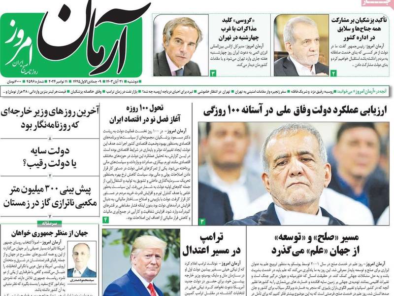 الصحف الصادرة اليوم الاثنين 11 نوفمبر (تشرين الثاني) حاولت تقييم أداء بزشكيان بعد مرور أكثر من 3 أشهر على وجوده في كرسي الرئاسة، وكان التقييم بطبيعة الحال متباينا وفقا لكل صحيفة وانتمائها السياسي.