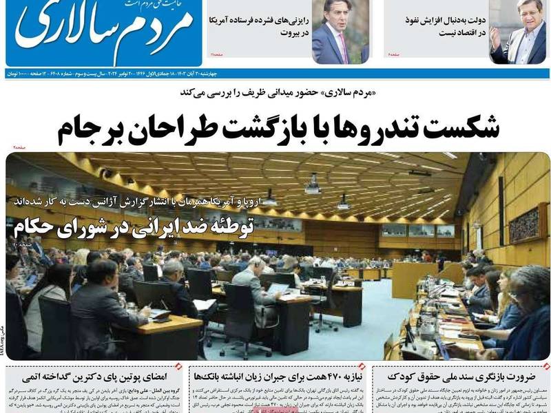 وعنونت الصحيفة في صفحتها الأولى حول الموضوع، وتساءلت بالقول: "هل نشهد صداما بين إيران والوكالة الدولية للطاقة؟"، كما أشارت "مردم سالاري" إلى الموضوع وعنونت بالقول: "مؤامرة ضد إيران في مجلس محافظي الوكالة".