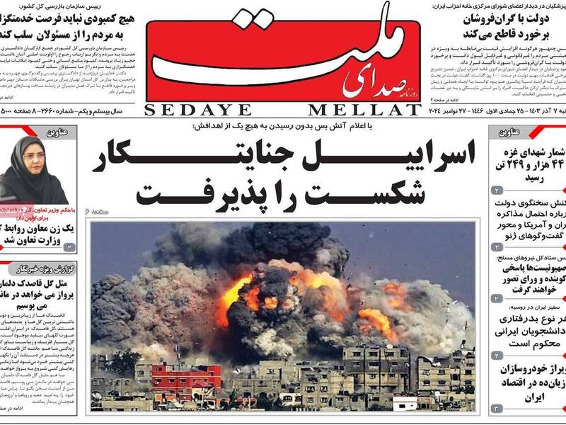 رحبت الصحف الإيرانية الصادرة اليوم الأربعاء 27 نوفمبر (تشرين الثاني) بالاتفاق على وقف إطلاق النار في لبنان.