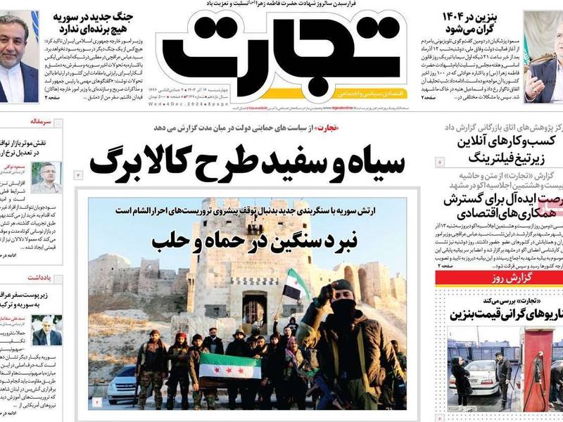 التطورات في الداخل السوري لا تزال تحتل أهمية قصوى في تغطية الصحف الإيرانية الصادرة اليوم، الأربعاء 4 ديسمبر (كانون الأول)، حيث قدمت بعض الصحف قراءات وتحليلات لما قد تؤول إليه الأحداث الجارية في سوريا.