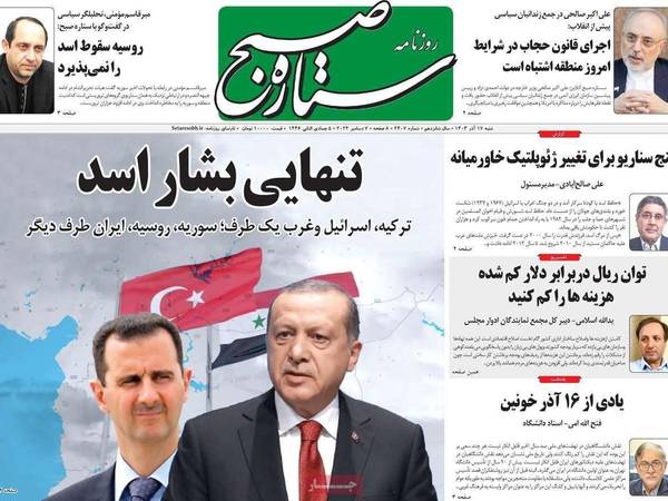 وكتبت الصحيفة تعليقا على ذلك: "مجموع هذه التطورات يؤكد أن التغيير في المشهد السياسي بسوريا قد حان أوانه وأن أدوات بشار الأسد في منع هذا التغيير باتت ضئيلة ويجب على طهران محاولة امتلاك حصة من هذه التغييرات لأنها لم يعد بمقدورها أن تحارب أو تمنع هذا التغيير".