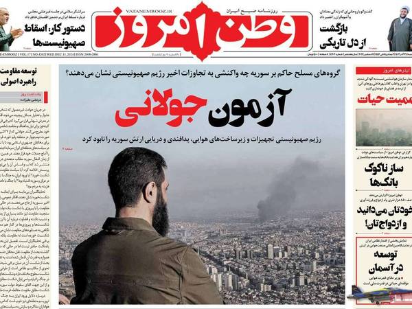 صحيفة "ستاره صبح" الإصلاحية ذكرت أن إيران وروسيا فقدا سوريا في فترة زمنية قصيرة وبشكل مفاجئ، وعنونت في صفحتها الأولى: "أفول إيران وروسيا في سوريا".