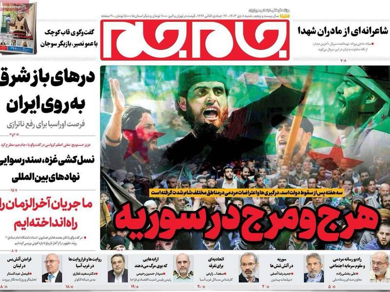 وعلى صعيد الملف في سوريا قالت صحيفة "جام جم" الأصولية إن حالة من الفوضى تعيشها سوريا اليوم بعد 3 أسابيع من سقوط بشار الأسد، مشيرة إلى المظاهرات التي نظمها العلويون في عدد من المدن السورية.