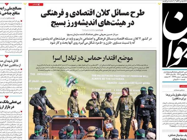 كان تنفيذ المرحلة الثانية من الاتفاق بين حماس وإسرائيل وإطلاق سراح 4 مجندات إسرائيليات في عرض كبير، حضره عدد غفير من سكان قطاع غزة مع انتشار واسع للمسلحين التابعين للحركة، عنوانا رئيسيا في تغطية الصحف الإيرانية الصادرة اليوم الأحد 26 يناير (كانون الثاني).
