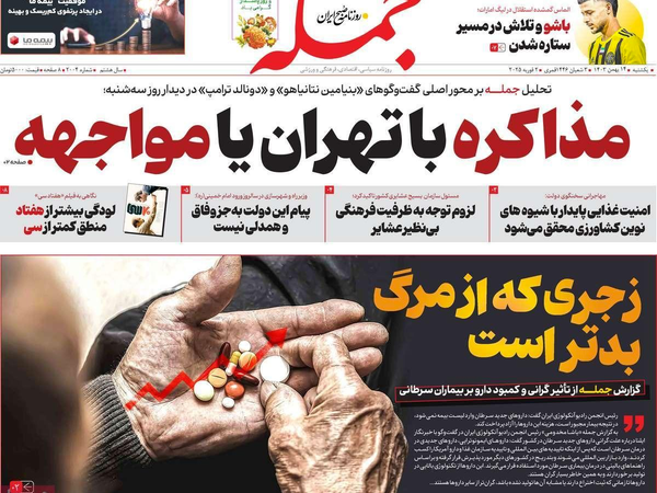 ورأت صحف أخرى أن المفاوضات والدخول في طريق الاتفاق الحقيقي مع إدارة ترامب هو النهج الأسلم أمام إيران في المرحلة المقبلة.