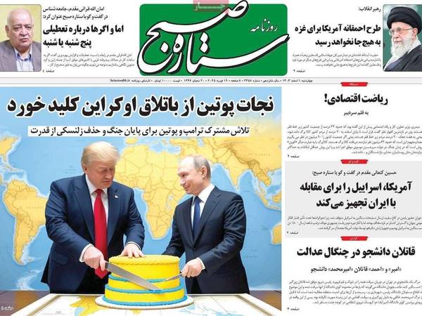 صحيفة "جمهوري إسلامي" لفتت إلى العلاقات الحسنة بين ترامب وبوتين، وحذرت المسؤولين وصناع القرار في طهران من احتمالية أن تتفق موسكو وواشنطن على ملفات تضر بمصالح إيران، وأكدت أن الروس في الأحداث الأخيرة التي شهدتها لبنان وسوريا كانت بجانب إسرائيل.