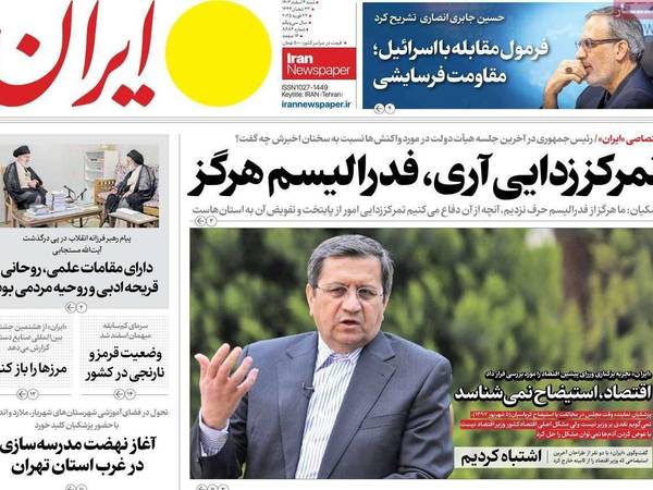 ونشرت صحيفة "اعتماد" الإصلاحية مقالاً لمساعد الرئيس الإيراني للشؤون الاجتماعية، علي ربيعي، دعا فيه إلى مساءلة واستجواب المسؤولين الحقيقيين وراء هذه الأزمة، وليس وزير الاقتصاد، الذي يعمل بكل جهده للحد من انهيار العملة الإيرانية.