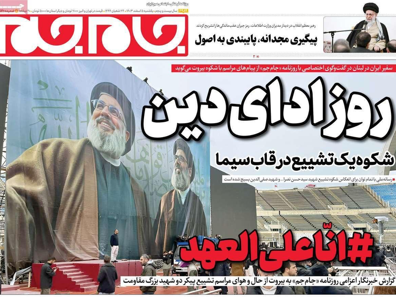واعتبرت الصحف أن المشاركة الشعبية في مراسم تشييع ودفن نصرالله، المقررة اليوم الأحد، ستكون بمثابة "رد الدّين" من قِبل الشعب اللبناني، لما جلبه لهم نصر الله من عزة وكرامة، كما ذكرت ذلك صحيفة "جام جم" الأصولية.