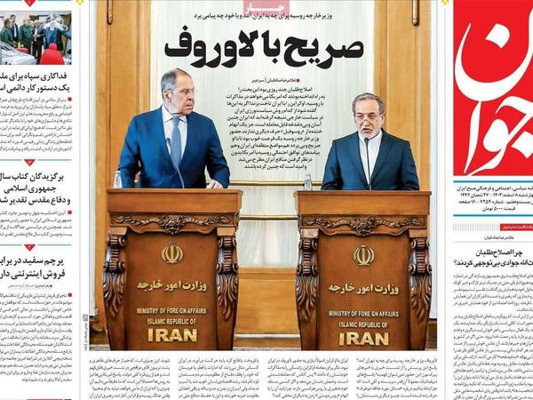 صحيفة "دنياي اقتصاد" كانت متفائلة تجاه زيارة لافروف، وعنونت في صفحتها الأولى: "رسالة حول الاتفاق النووي في طهران"، فيما كتبت صحيفة "سازندكي" الإصلاحية: "النصيحة الروسية"، وأشارت إلى تصريح لافروف، لكنها أرفقت كذلك كلام عراقجي الذي قال إن طهران لن ترضخ لضغوط واشنطن، ولن تتفاوض معها في ظل هذه الحالة.