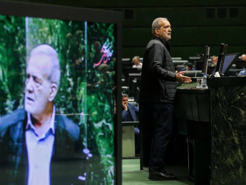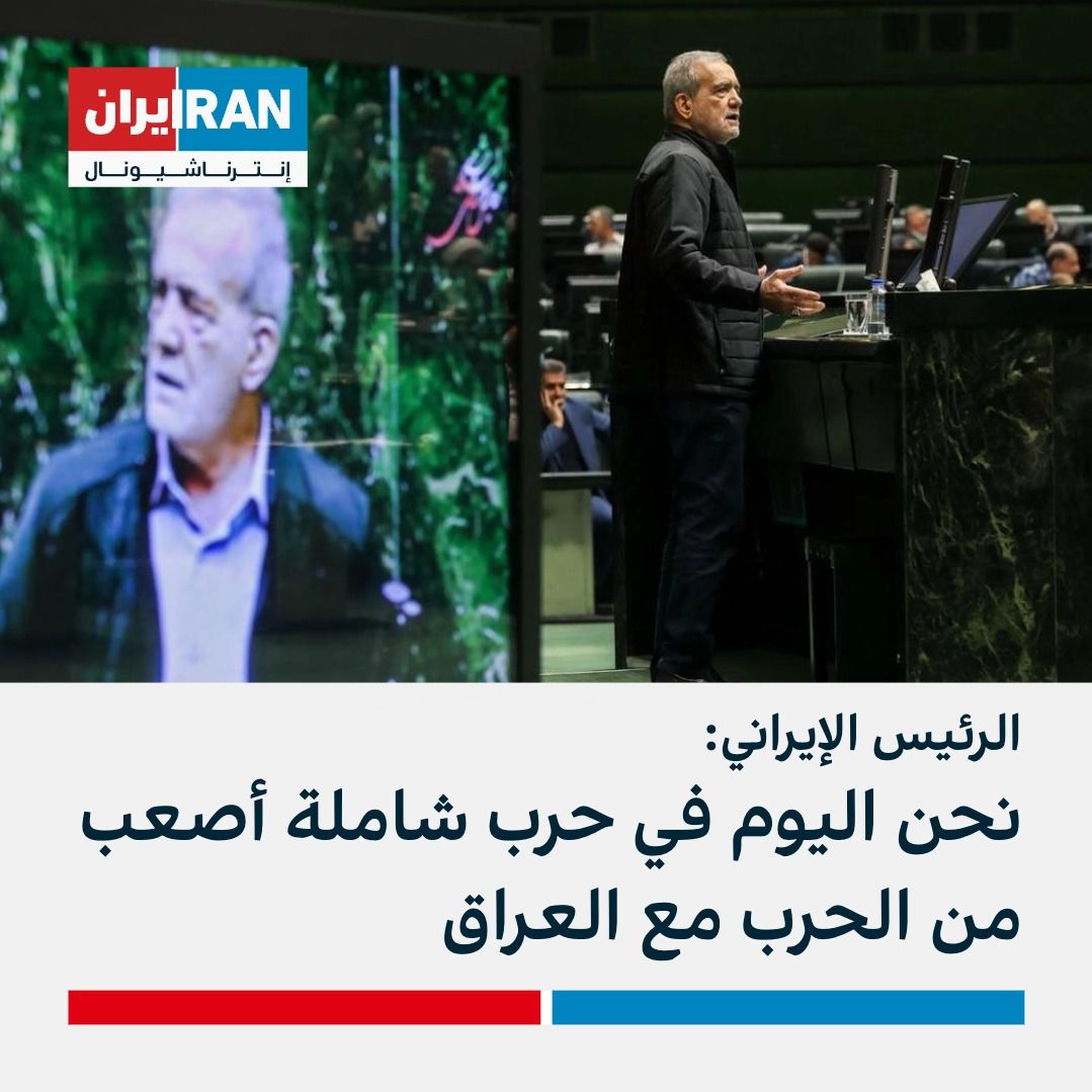 أشار الرئيس الإيراني مسعود بزشكيان في جلسة استجواب وزير الاقتصاد إلى مقتل إسماعيل هنية، في اليوم الأول من عمل حكومته، إلى جانب التطورات في سوريا ولبنان، مضيفًا:“نحن اليوم في حرب شاملة، أصعب وأقسى من الحرب مع العراق وعلينا اعتماد نهج حربي…لا يمكن أن نكون في حالة حرب دون مشكلات.”