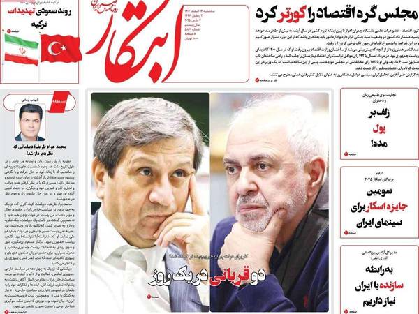 استقالة مساعد الرئيس الإيراني للشؤون الاستراتيجية محمد جواد ظريف وإقالة وزير الاقتصاد عبد الناصر همتي من قبل البرلمان، هما الموضوعان الرئيسيان اللذان سيطرا على الصحف الإيرانية الصادرة اليوم الثلاثاء 4 مارس (آذار) الجاري.