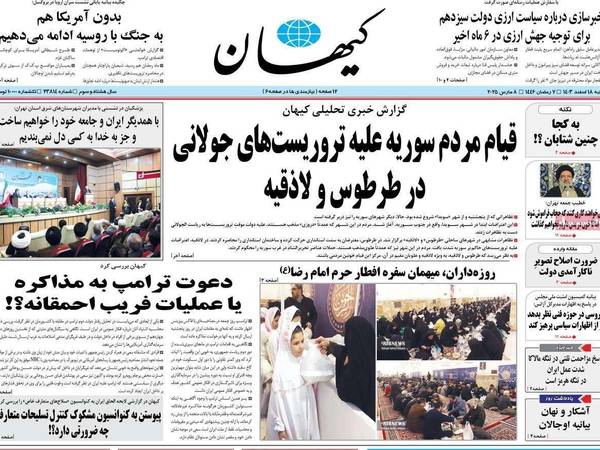 تناولت صحيفة "كيهان" المقربة للمرشد، وصحيفة "همشهري" المقربة من الحكومة، الأحداث الأخيرة في سوريا، ودافعتا عن فلول نظام الأسد ووصفتهم بـ"المقاومة" كما وصفت تمردهم على الإدارة الجديدة بـ"الثورة".