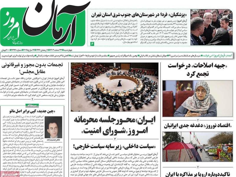 وأشارت صحيفة "آرمان ملي" إلى هذه الضغوط الأميركية على بغداد وانعكاسات ذلك على العلاقة مع طهران وعنونت في صفحتها الأولى: "العلاقات بين إيران والعراق في حصار العقوبات".