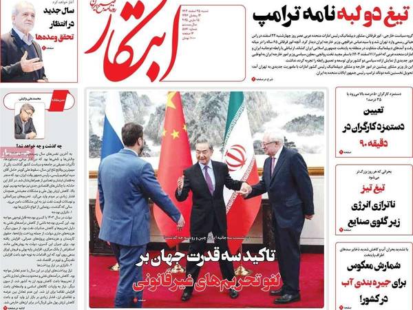 وأشارت الصحف الأصولية والمقربة من النظام إلى المفاوضات، التي أُجريت بين إيران وكل من روسيا والصين حول مستقبل الاتفاق النووي، والتوتر الحالي مع الغرب؛ حيث حذرت هذه الدول من تبعات تفعيل آلية الزناد ضد إيران، خلال الأشهر المقبلة، وسط احتمالية وصول المفاوضات إلى طريق مسدود، في ظل الموقف الإيراني المتصلب من التفاوض مع إدارة ترامب.