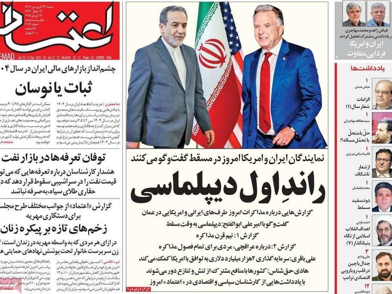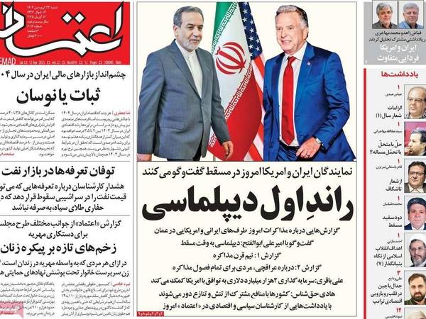 سيطرت المفاوضات بين طهران وواشنطن في عمان، ولا شيء غيرها، على تغطية الصحف الإيرانية الصادرة اليوم السبت، 12 أبريل (نيسان)؛ حيث كانت معظم هذه الصحف، باستثناء الصحف المتشددة، متفائلة إزاء المفاوضات ونتائجها.