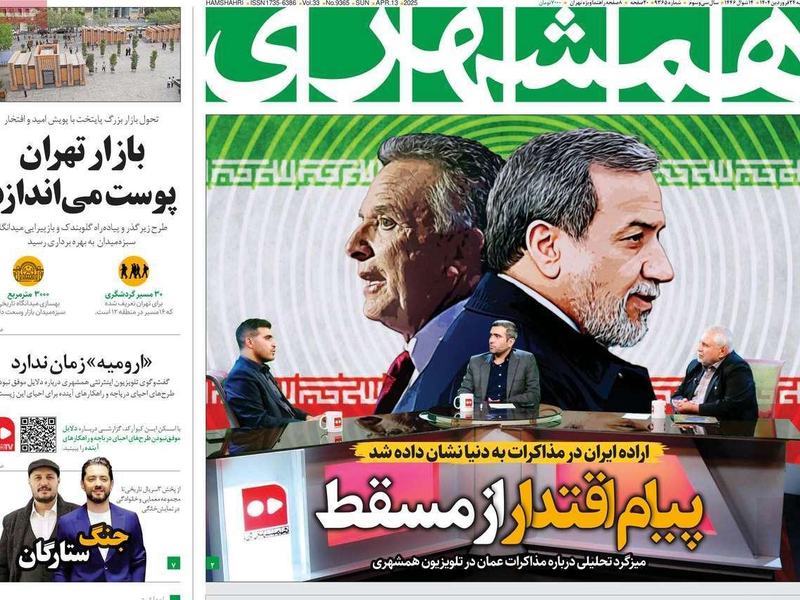 "خطوة كبيرة إلى الأمام، وتطور إيجابي في مسار المفاوضات بين إيران وأميركا، والاتفاق على استمرار المفاوضات".. كانت هذه خلاصة تقييم الصحف الإيرانية الصادرة يوم الأحد 13 إبريل (نيسان)، للجولة الأولى من المفاوضات بين وواشنطن وطهران بوساطة عُمانية.