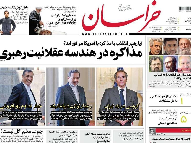 صحيفة "خراسان" الأصولية حاولت الإجابة على سؤال يتم طرحه كثيرا هذه الأيام، وهو: ما الموقف الحقيقي للمرشد علي خامنئي من المفاوضات؟ فقبل أسابيع قليلة أكد خامنئي رفضه للمفاوضات ووصف القيام بها بأنه عمل "غير شريف" و"غير ذكي"، ليتفاجأ العالم في الأيام القليلة بقبول طهران المفاوضات وبدئها في عمان.