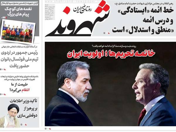 احتلت الجولة الثالثة من المفاوضات بين طهران وواشنطن، والإساءة لأهل السُّنة عبر التلفزيون الإيراني الرسمي، وردود الأفعال حول ذلك، احتلت صدارة الموضوعات في تغطية الصحف الإيرانية الصادرة اليوم السبت 26 أبريل (نيسان).