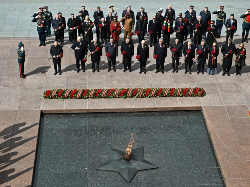 وبالإضافة إلى ذلك، حضر الاحتفال ممثلون عن كوريا الشمالية والمناطق الخاضعة للسيطرة الروسية في جورجيا، مثل أبخازيا وأوسيتيا الجنوبية، فضلاً عن وزراء دفاع من 31 دولة أخرى.