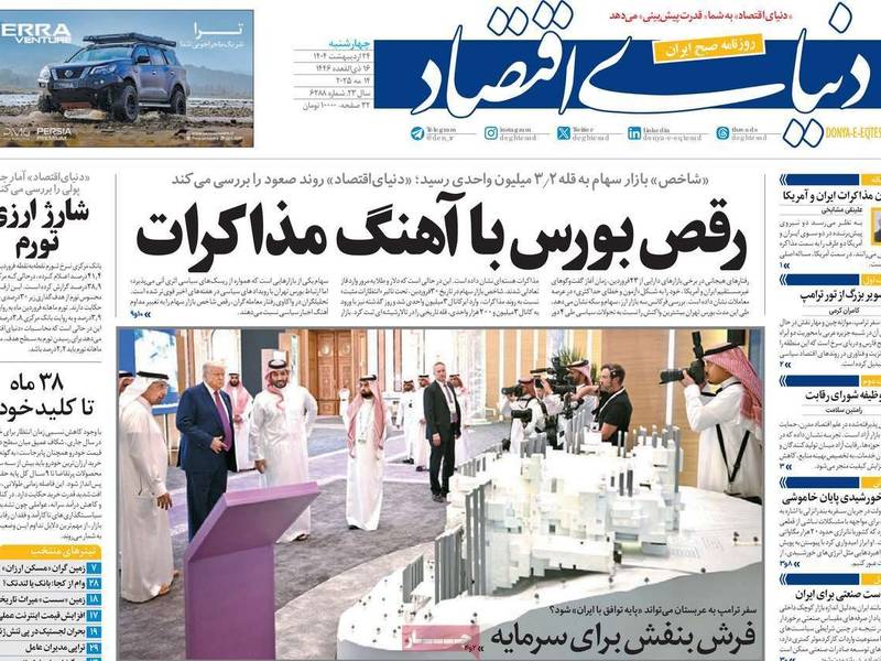 تناولت الصحف الإيرانية الصادرة اليوم الأربعاء، عددًا من الموضوعات، على رأسها ملف التفاوض بين طهران وواشنطن، وزيارة الرئيس الأميركي للرياض، وارتفاع مؤشرات الانتحار بسبب سوء الأوضاع الاقتصادية، واتهامات للنواب بالفساد.