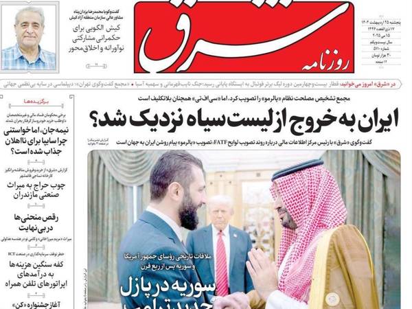 تناولت الصحف الإيرانية الصادرة اليوم الخميس 15 مايو (أيار)، عددًا من الموضوعات، على رأسها جولة الرئيس الأميركي في الشرق الأوسط، وردود الفعل الإيرانية على تصريحات ترامب، وتصديق مجلس تشخيص مصلحة النظام على انضمام إيران لاتفاقية (باليرمو).